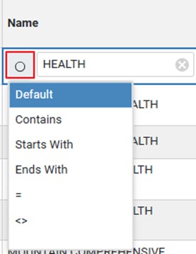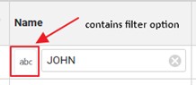 - Click on the filter icon next to the filter text box to display the drop-down list of filter options.