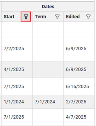You can make the data displayed in the Search Results more manageable by using the filter on one or more columns in the Search Results.